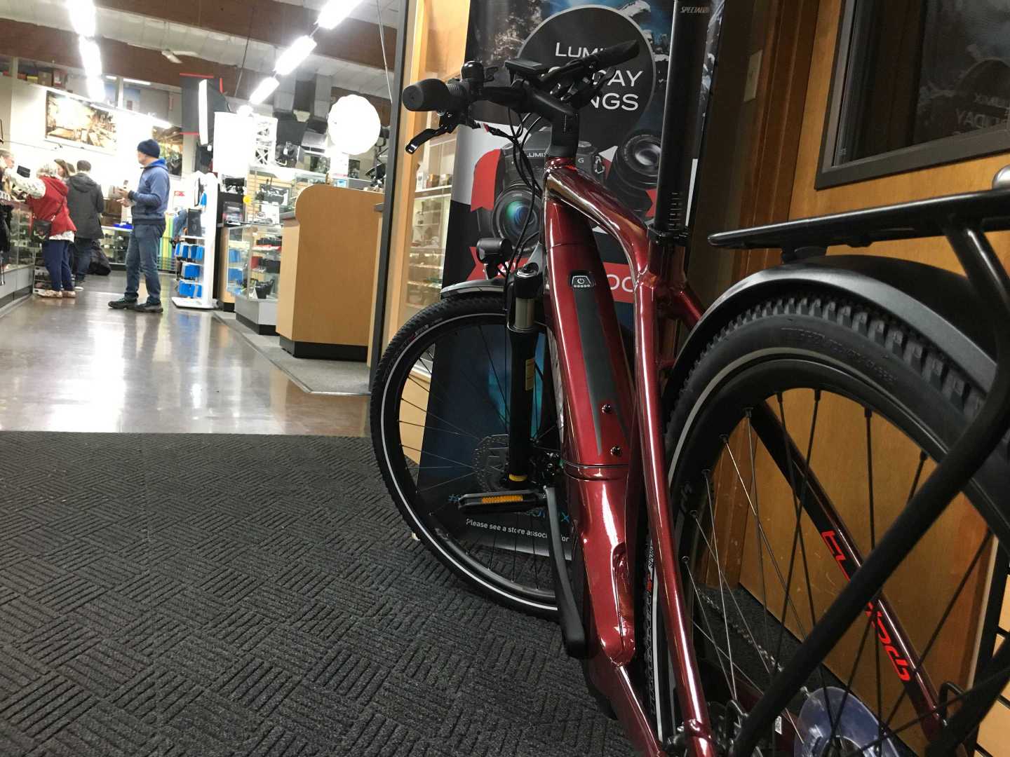 Karen bought a nice camera for her trip to Africa and I bought a new ebike to get around while she was gone. Here I parked in the camera store rather than risk another theft.